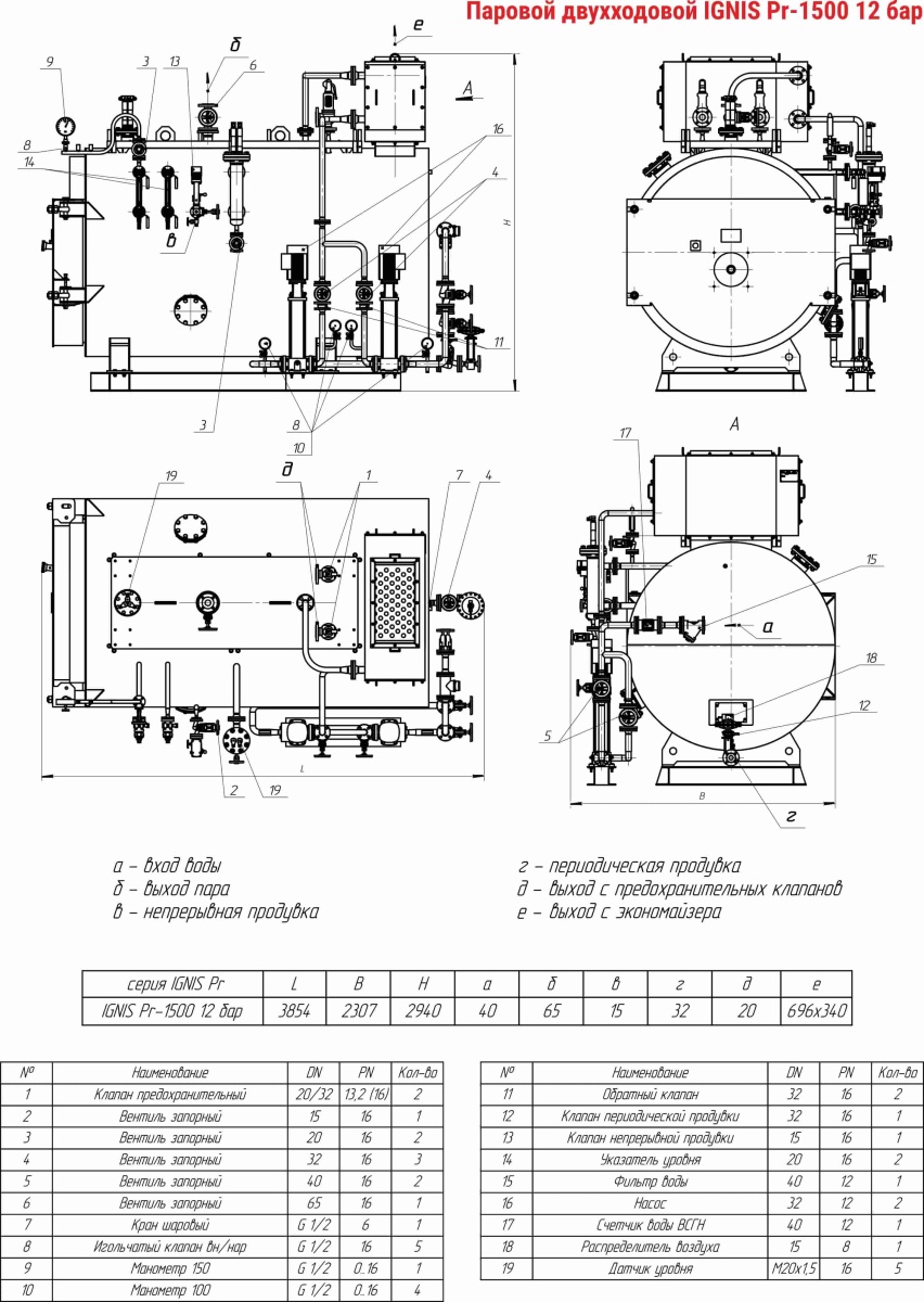 Технические характеристики парового двухходового котла ARCUS IGNIS Pr-1500