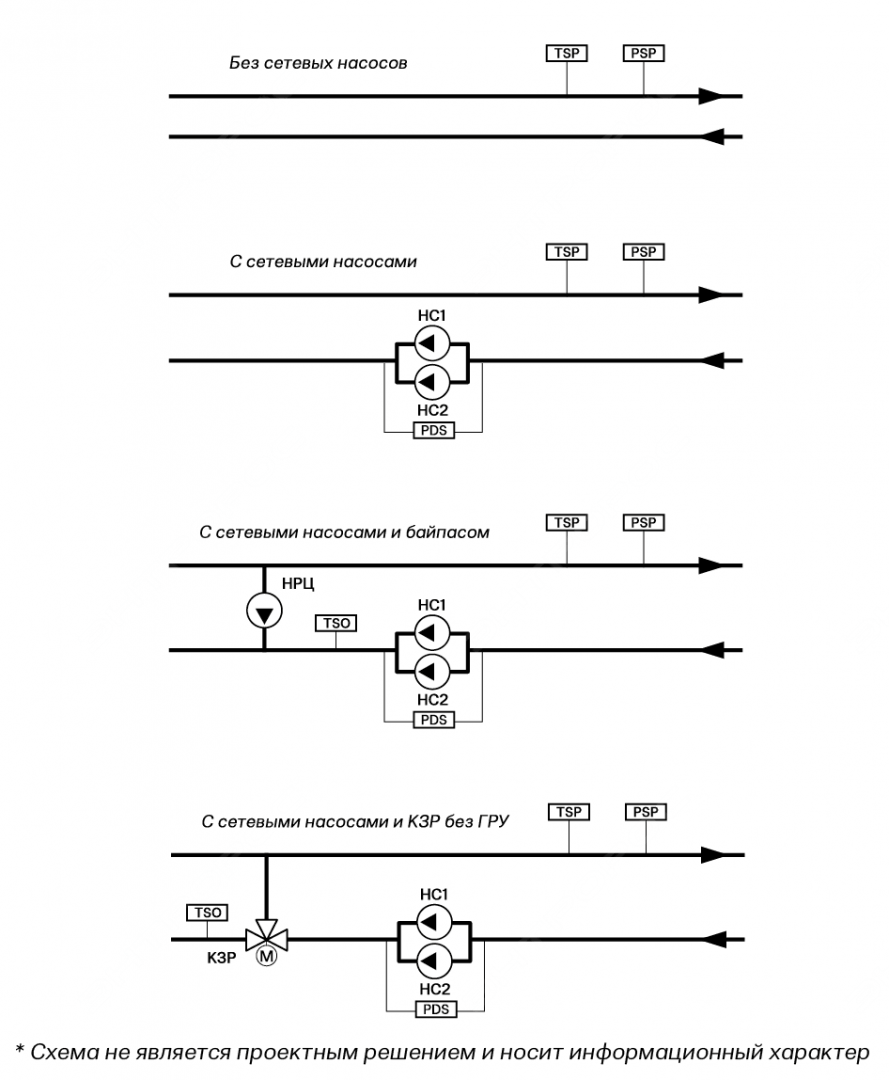 - регулирование сетевыми насосами;